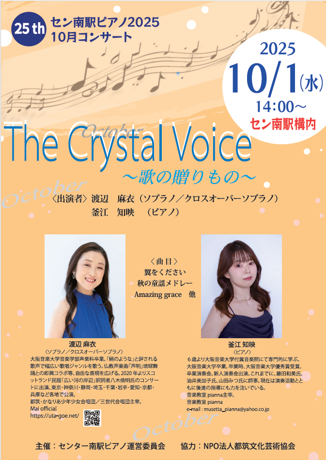 10月のコンサートは渡辺麻衣さんによる、歌のコンサートです。