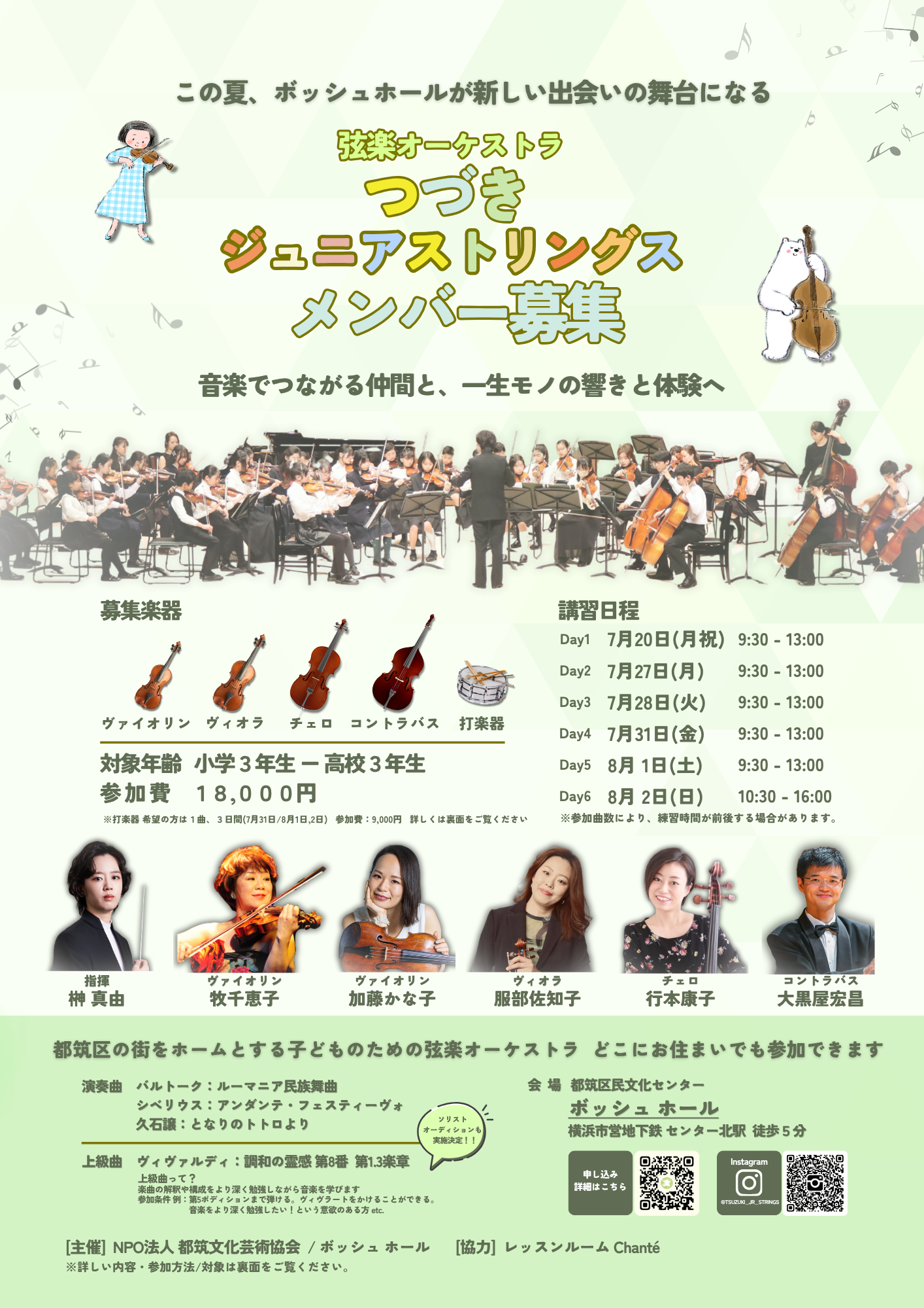 ※詳しくは[つづきジュニアストリングス2026 夏] 1次募集 締め切り後にお知らせいたします。